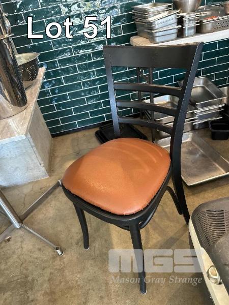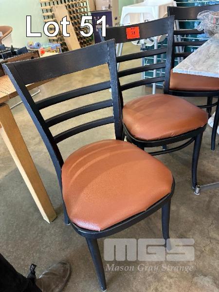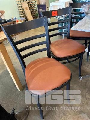 23 x TIMBER CHAIRS, BROWN VINYL SEATS