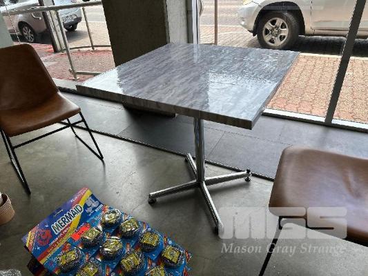 6 x RESTAURANT TABLES, CHROME PEDESTAL BASE