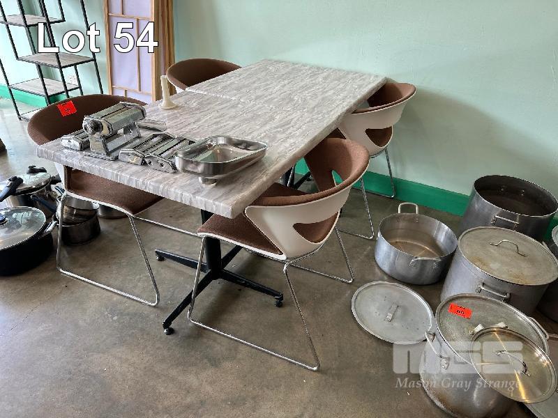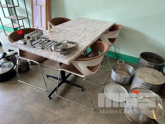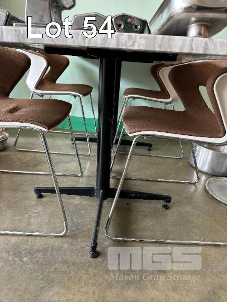6 x RESTAURANT TABLES, BLACK PEDESTAL BASE