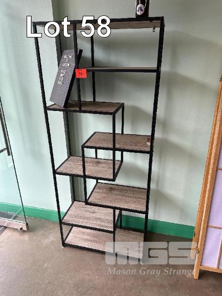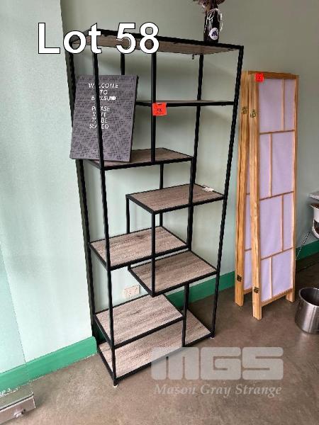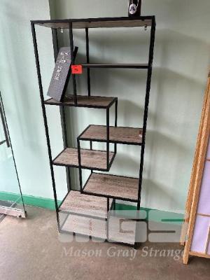 TIERED SHELF UNIT, BLACK STEEL FRAME, TIMBER LAMINATE SHELVES, 775 x 330 x 1855mm (H)