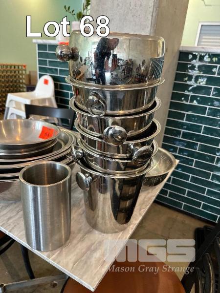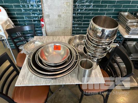 STAINLESS STEEL BOWLS, 10 x LARGE & 13 x SMALL, 1 x LARGE COLANDER & 4 x ICE BUCKETS