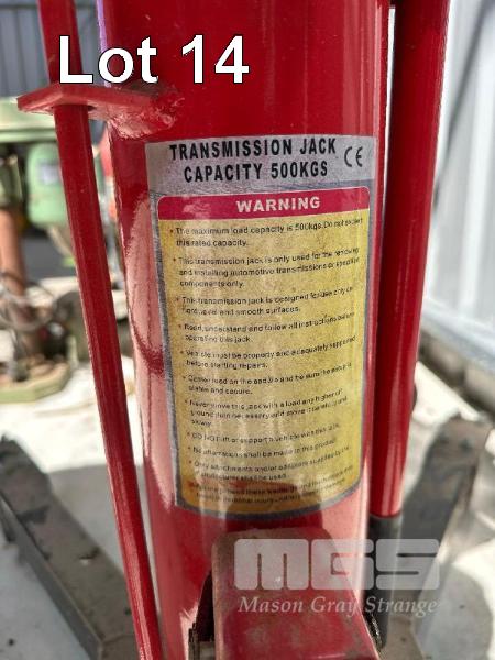 MOBILE GEARBOX LIFTER, HYDRAULIC, RATED 500kg CAP, GOOD CONDITION