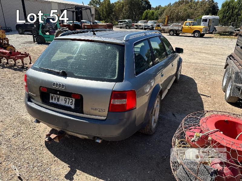 2002 AUDI QUATTRO 2.5 TDI 'ALL ROAD' STATION WAGON, AWD, 5 SPEED AUTO, A/C, ELECTRIC WINDOWS, REGO: WVW973, VIN: WAUZZZ4BX2N13437Q, ODO: 215,349km TURNING OVER, NOT STARTING, ELECTRIC ISSUES, HYDRAULIC SUSPENSION A/F, BODY PAINT ROUGH, LEFT PASSENGER DOOR NOT CLOSING