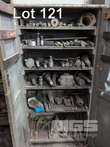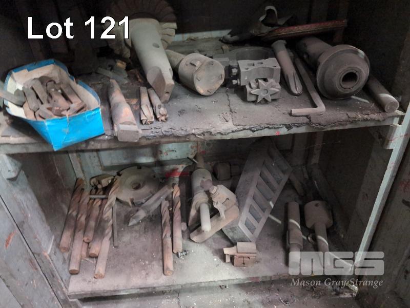 TIMBER CABINET & CONTENTS OF TOOLING, BORING BARS, REAMERS, MILLING CUTTERS