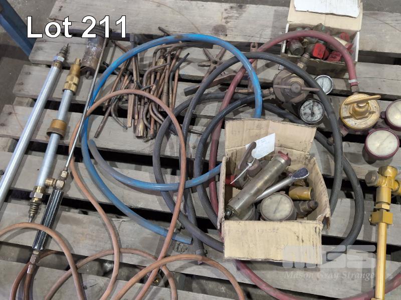 LOT ASSORTED WELDING OXY & ACETYLENE GAUGES, TORCHES & WELDING TIPS