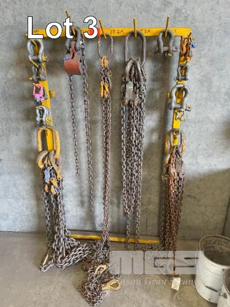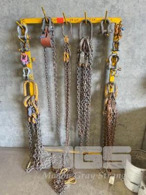CHAIN RACK & ACCESSORIES, D-SHACKLES, BOW SHACKLES, PLATE GRAB, TWIN LEG CHAIN SETS INCLUDING, 9.2 TONNE, 7.5 TONNE, 5.5 TONNE & 2.6 TONNE