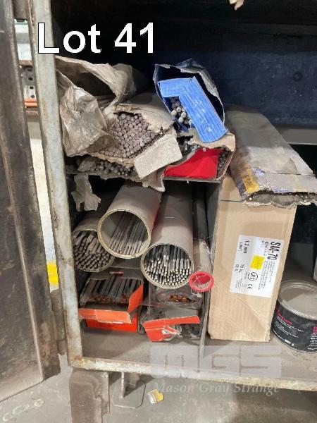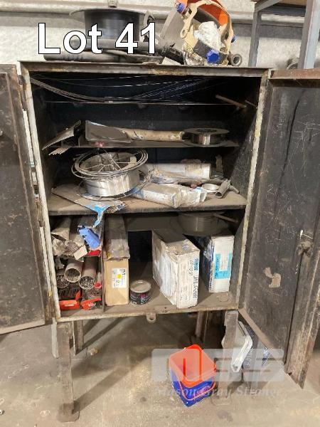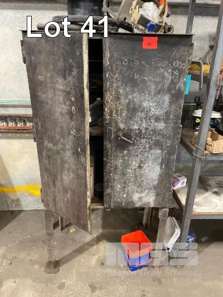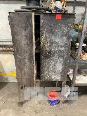 WELDER CUPBOARD & CONTENTS, 815 x 450 x 1000mm STEEL PLUS ARC WELDING RODS & MIG WIRE