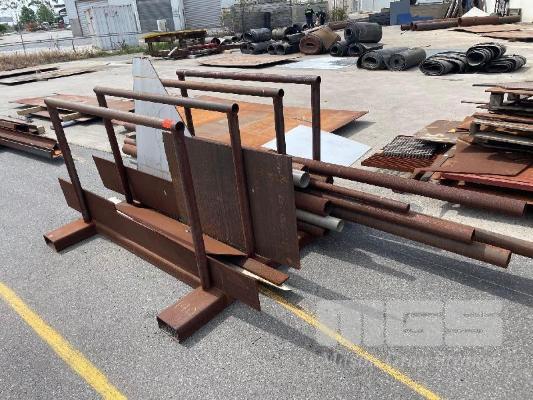 STEEL RACK, 3 BAY & CONTENTS STEEL PLATE & PIPE