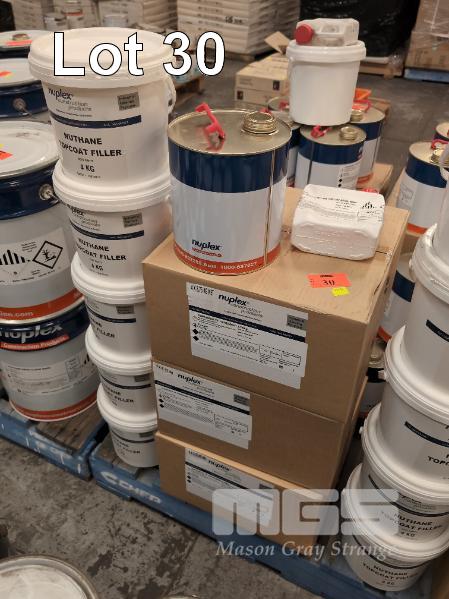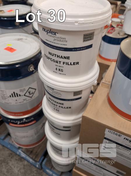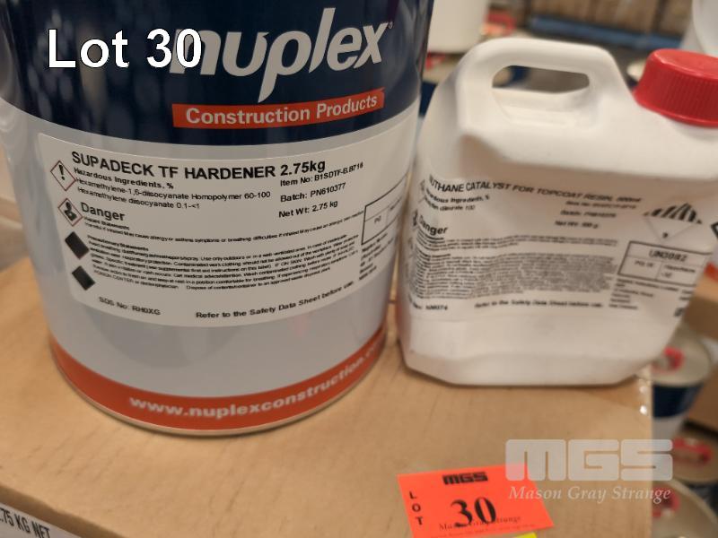 NUPLEX NUTHANE POLYURETHANE HEAVY DUTY FLOORING SYSTEM GLOSS FINISH TF TOPCOAT FORMULATION. 13 X 2.75 KG CANS OF NUPLEX SUPADECK TF HARDNER. 5 X 4.0 KG PAILS OF NUPLEX NUTHANE TOPCOAT FILLER. 1 X 500 ML JERRY CAN OF NUTHANE TOPCOAT CATALYST. ** NO RESIN ** ** COMBINED WITH 20 KG NUTHANE RESIN NUTHANE TF TOPCOAT FORMULATION COVERS 320 - 400 M2 SINGLE LAYER GLOSS FINISH TOPCOAT **