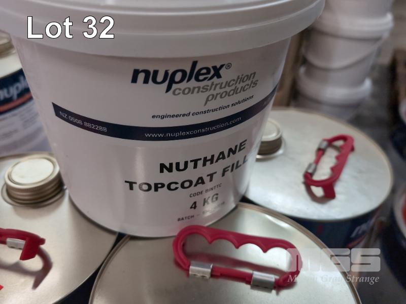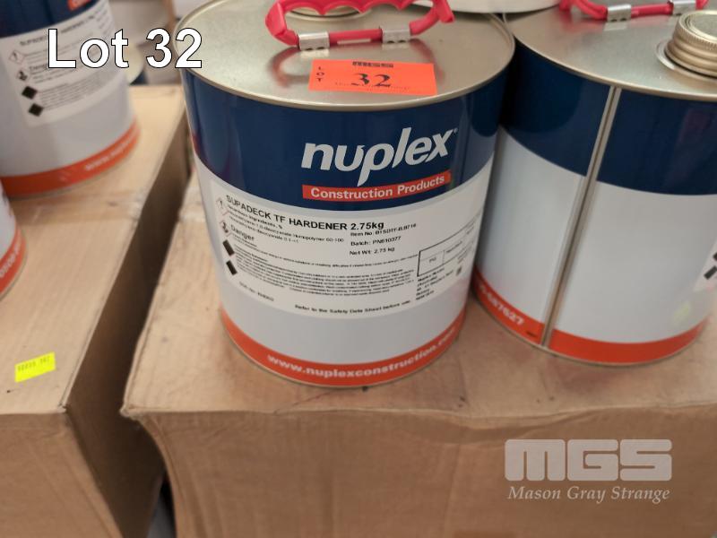 NUPLEX NUTHANE POLYURETHANE HEAVY DUTY FLOORING SYSTEM GLOSS FINISH TF TOPCOAT FORMULATION. 13 X 2.75 KG CANS OF NUPLEX SUPADECK TF HARDNER. 5 X 4.0 KG PAILS OF NUPLEX NUTHANE TOPCOAT FILLER. 1 X 500 ML JERRY CAN OF NUTHANE TOPCOAT CATALYST. ** NO RESIN ** ** COMBINED WITH 20 KG NUTHANE RESIN NUTHANE TF TOPCOAT FORMULATION COVERS 320 - 400 M2 SINGLE LAYER GLOSS FINISH TOPCOAT **