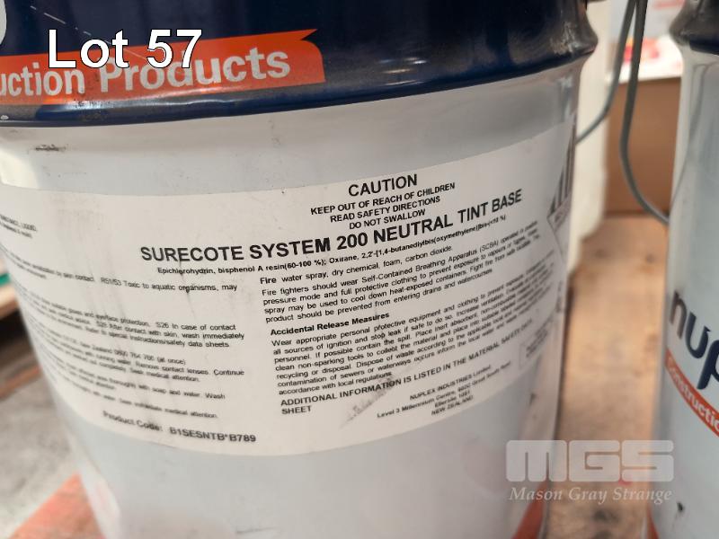 NUPLEX SURECOTE HIGH-BUILD EPOXY FLOOR COATING SYSTEM. 1 X 12 LITRE PAIL OF NUPLEX SURECOTE SYSTEM 200 NEUTRAL TINT BASE. 1 X 4 LITRE TIN OF NUPLEX SURECOTE SYSTEM 200 NORMAL HARDENER.