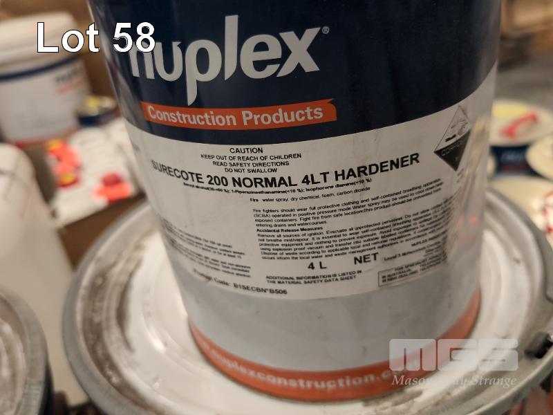 NUPLEX SURECOTE HIGH-BUILD EPOXY FLOOR COATING SYSTEM. 1 X 12 LITRE PAIL OF NUPLEX SURECOTE SYSTEM 200 NEUTRAL TINT BASE. 1 X 4 LITRE TIN OF NUPLEX SURECOTE SYSTEM 200 NORMAL HARDENER.