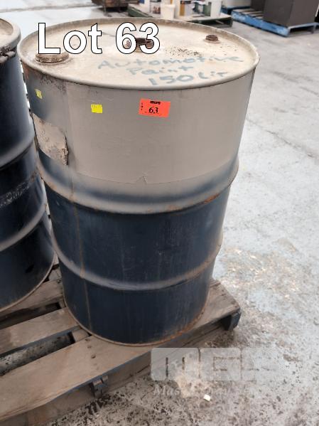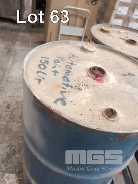 1 X 150 LITRES AUTOMOTIVE COATING PPG. PULSE RED II. EX GMH. CONTENTS 44 GALLON STEEL DRUM.