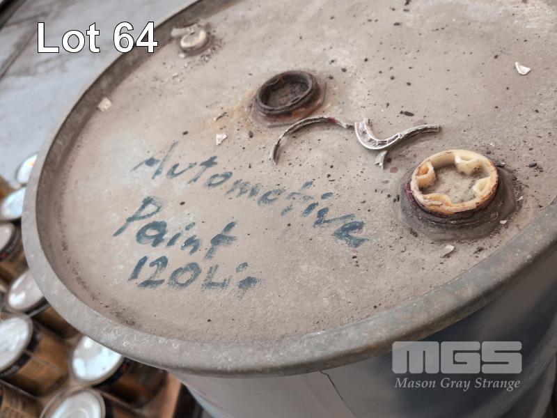 1 X 120 LITRES AUTOMOTIVE COATING PPG. PULSE RED II. EX GMH. CONTENTS 44 GALLON STEEL DRUM.