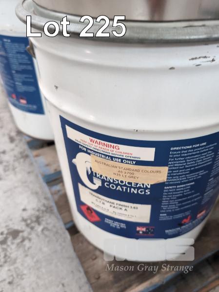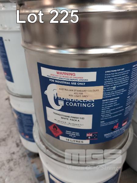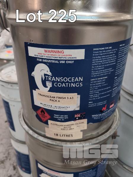 3 X 18 LITRE PAILS TRANSOCEAN COATINGS TRANSOTHANE FINISH 3.63 PACK A. COLOUR LIGHT GREY. ** QUANTITY IN EACH PAIL VARIES **
