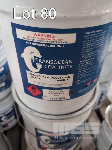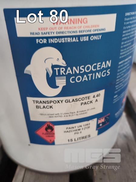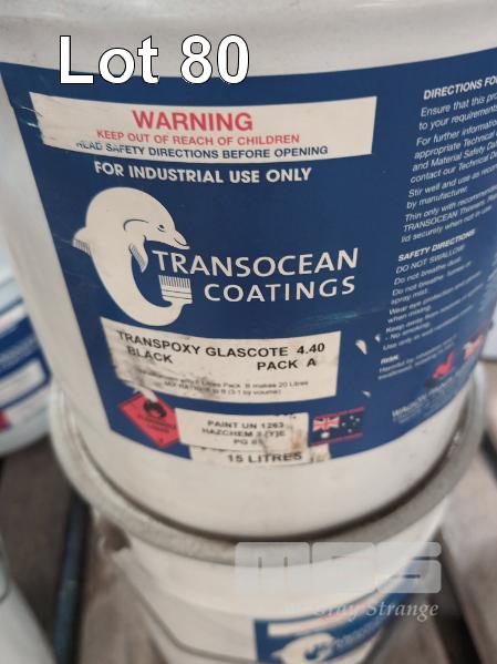 3 X 15 LITRE PAILS TRANSOCEAN COATINGS TRANSPOXY GLASCOTE 4.40 PACK A. COLOUR BLACK.