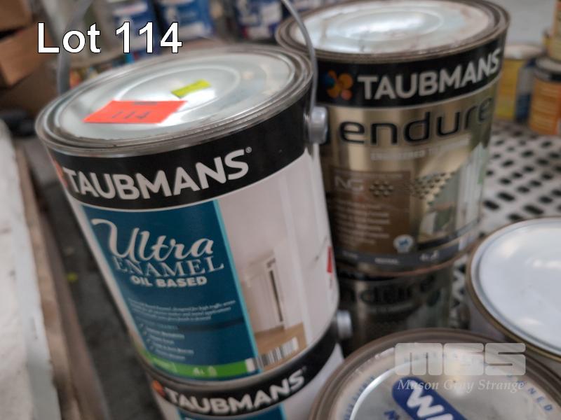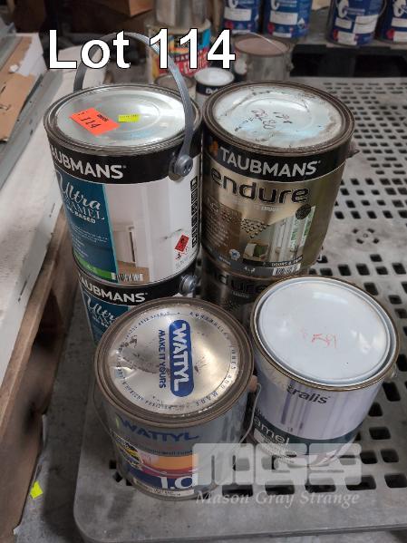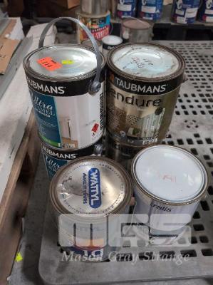 2 X 4.0 LITRE TINS TAUBMANS ULTRA OIL BASED ITERIOR SEM GLOSS ENAMEL PAINT. COLOUR ACCENT. 2 X 4.0 LITRE TINS TAUBMANS ENDURE INTERIOR GLOSS PAINT FOR DOORS & TRIM. NEUTRAL. 1 X 4.0 LITRE TIN WATTYL ULTRA PREMIUM GLOSS INTERIOR WALL PAINT. LIGHT BASE. 1 X 4.0 LITRE TIN AUSTRALIS INTERIOR/EXTERIOR OIL BASED GLOSS ENAMEL. LIGHT TINT BASE.