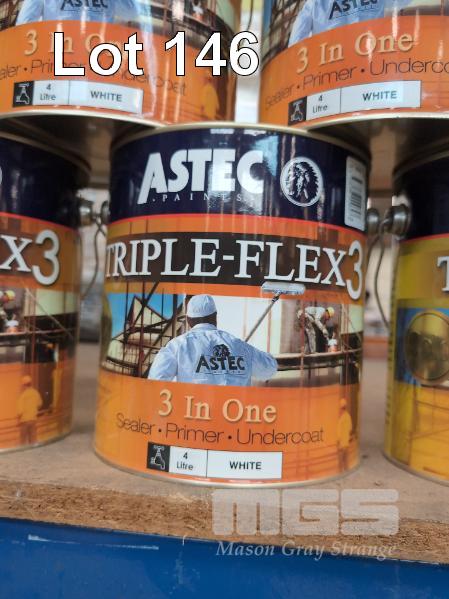 10 X 4 LITRE TINS OF ASTEC PAINTS TRIPLE-FLEX3 3 IN ONE SEALER PRIMER UNDERCOAT. WHITE.