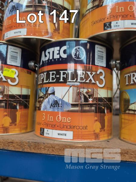 10 X 4 LITRE TINS OF ASTEC PAINTS TRIPLE-FLEX3 3 IN ONE SEALER PRIMER UNDERCOAT. WHITE.