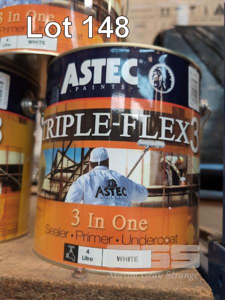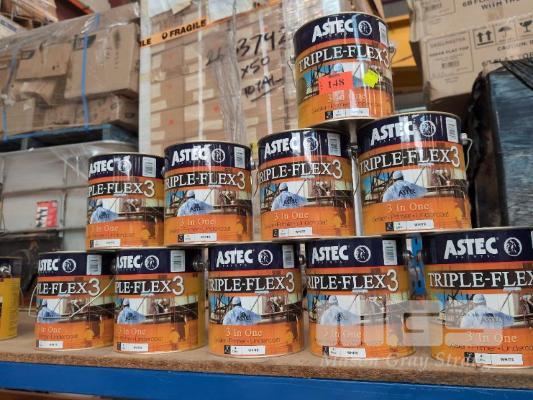 10 X 4 LITRE TINS OF ASTEC PAINTS TRIPLE-FLEX3 3 IN ONE SEALER PRIMER UNDERCOAT. WHITE.