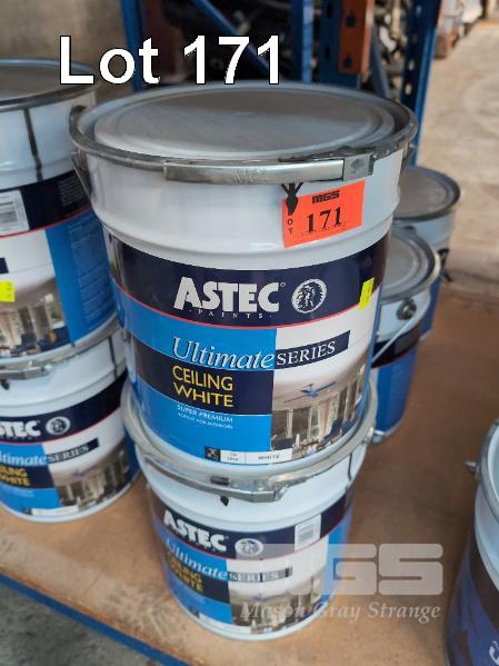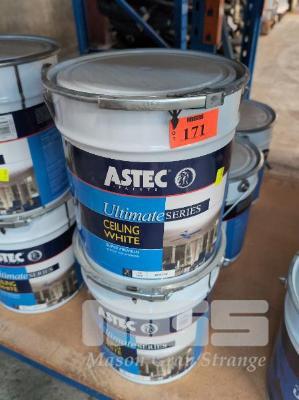 4 X 10 LITRE PAILS OF ASTEC ULTIMATE SERIES SUPER PREMIUM INTERIOR ACRYLIC PAINT. 5% GLOSS. CEILING WHITE.