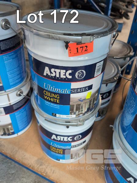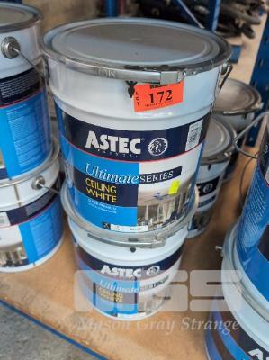 4 X 10 LITRE PAILS OF ASTEC ULTIMATE SERIES SUPER PREMIUM INTERIOR ACRYLIC PAINT. 5% GLOSS. CEILING WHITE.