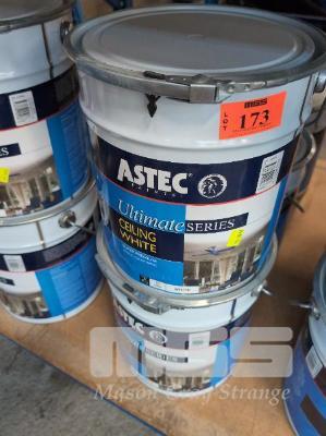 4 X 10 LITRE PAILS OF ASTEC ULTIMATE SERIES SUPER PREMIUM INTERIOR ACRYLIC PAINT. 5% GLOSS. CEILING WHITE.