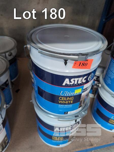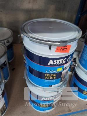 4 X 10 LITRE PAILS OF ASTEC ULTIMATE SERIES SUPER PREMIUM INTERIOR ACRYLIC PAINT. 5% GLOSS. CEILING WHITE.