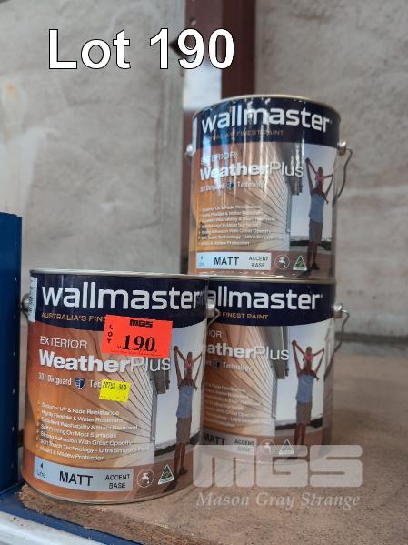 3 X 4.0 LITRE TINS OF ASTEC PAINTS WALLMASTER WEATHER PLUS EXTERIOR MATT PAINT. ACCENT BASE.
