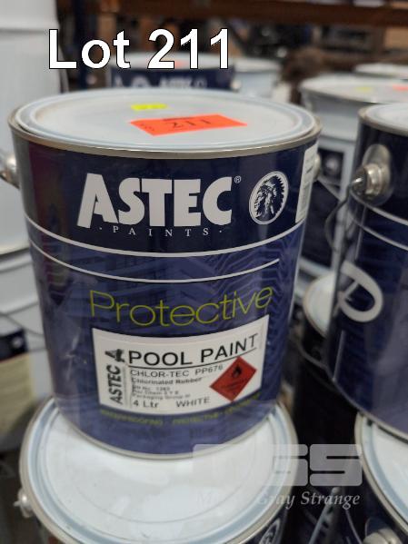 5 X 4 LITRE TINS OF ASTEC PROTECTIVE POOL PAINT. CHLORINATED RUBBER CHLOR-TEC PP676. WHITE.
