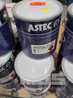 5 X 4 LITRE TINS OF ASTEC PROTECTIVE POOL PAINT. CHLORINATED RUBBER CHLOR-TEC PP676. WHITE.