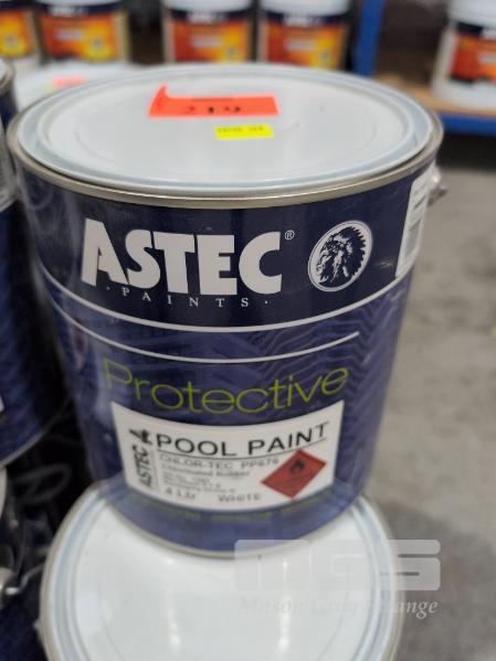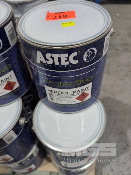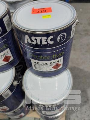 5 X 4 LITRE TINS OF ASTEC PROTECTIVE POOL PAINT. CHLORINATED RUBBER CHLOR-TEC PP676. WHITE.