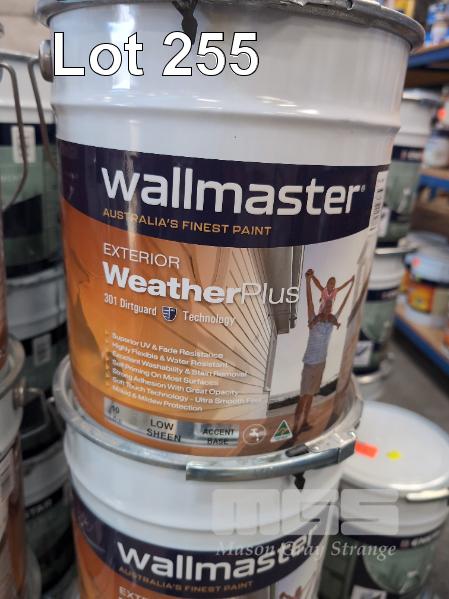 4 X 10 LITRE PAILS ASTEC WALLMASTER WEATHER PLUS EXTERIOR LOW SHEEN PAINT. ACCENT BASE.