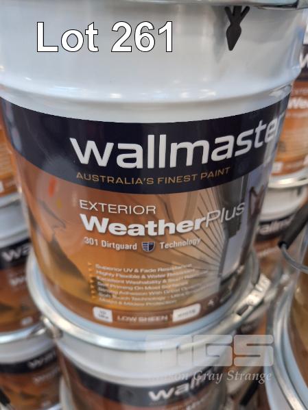 4 X 10 LITRE PAILS ASTEC WALLMASTER WEATHER PLUS EXTERIOR LOW SHEEN PAINT. WHITE.
