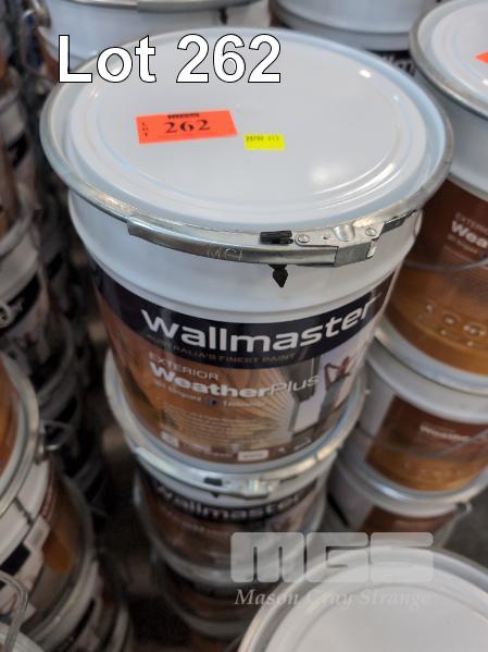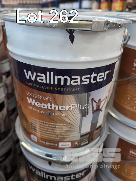 4 X 10 LITRE PAILS ASTEC WALLMASTER WEATHER PLUS EXTERIOR LOW SHEEN PAINT. WHITE.