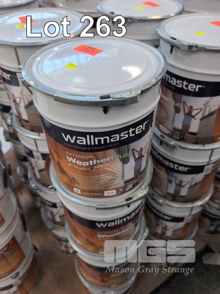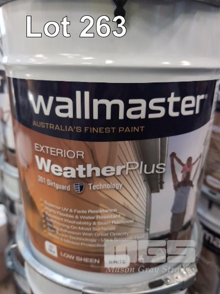4 X 10 LITRE PAILS ASTEC WALLMASTER WEATHER PLUS EXTERIOR LOW SHEEN PAINT. WHITE.