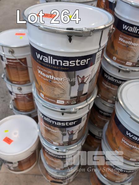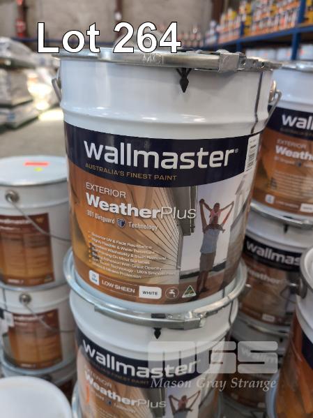 4 X 10 LITRE PAILS ASTEC WALLMASTER WEATHER PLUS EXTERIOR LOW SHEEN PAINT. WHITE.