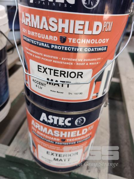 2 X 4 LITRE TINS ASTEC ARMASHIELD EXTERIOR ARCHITECTURAL PROTECTIVE COATING. MATT ACCENT.