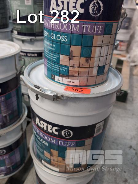 2 X 10 LITRE PAILS ASTEC BATHROOM TUFF SUPER PREMIUM ACRYLIC INTERIOR PAINT. SEMI-GLOSS. ** NO COLOUR MARKED **