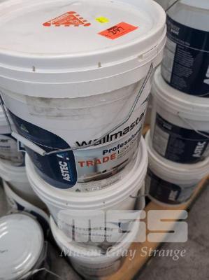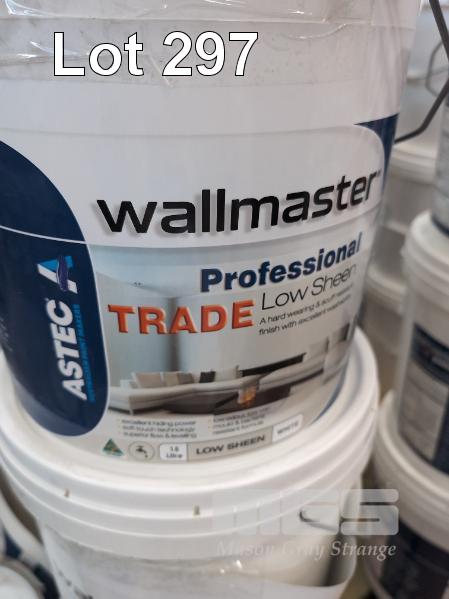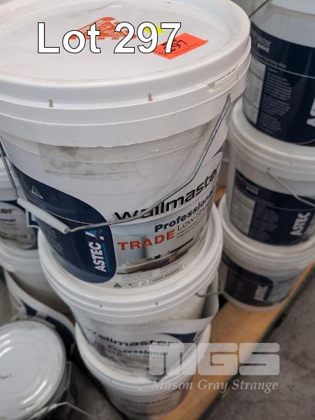 3 X 15 LITRE PAILS ASTEC WALLMASTER PROFESSIONAL "TRADE" INTERIOR PAINT. LOW SHEEN WHITE.