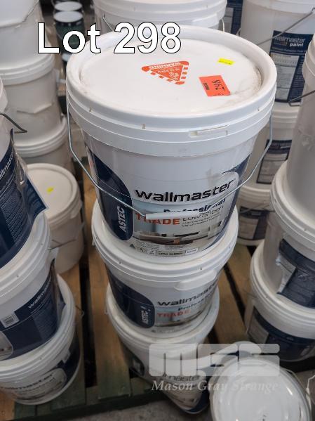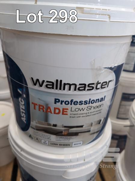 3 X 15 LITRE PAILS ASTEC WALLMASTER PROFESSIONAL "TRADE" INTERIOR PAINT. LOW SHEEN WHITE.