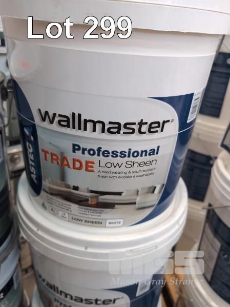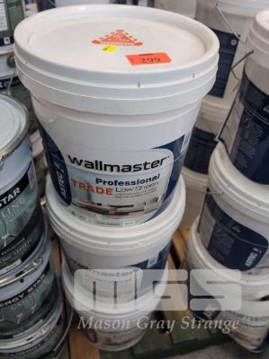 3 X 15 LITRE PAILS ASTEC WALLMASTER PROFESSIONAL "TRADE" INTERIOR PAINT. LOW SHEEN WHITE.