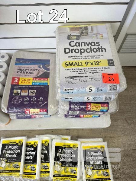 15 x CANVAS DROP SHEETS, NEW, UNI PRO & MONARCH & 10 x PACKETS PLASTIC PROTECTION SHEETS