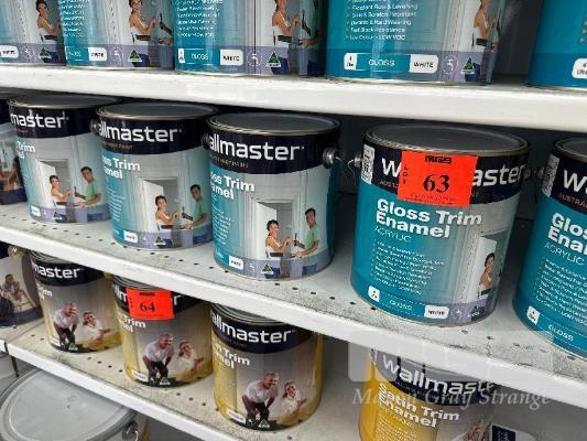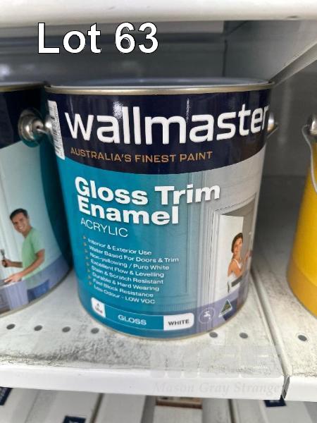 6 x TINS, WALL MASTER, 4 LITRE GLOSS TRIM ENAMEL, ACRYLIC GLOSS WHITE