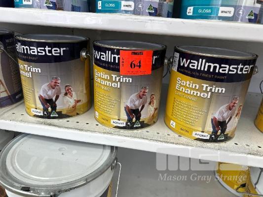 4 x TINS, WALL MASTER, 4 LITRE ENAMEL SATIN TRIM MID BASE & SATIN & 1 x 10 LITRE TIN ACCENT