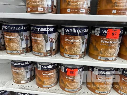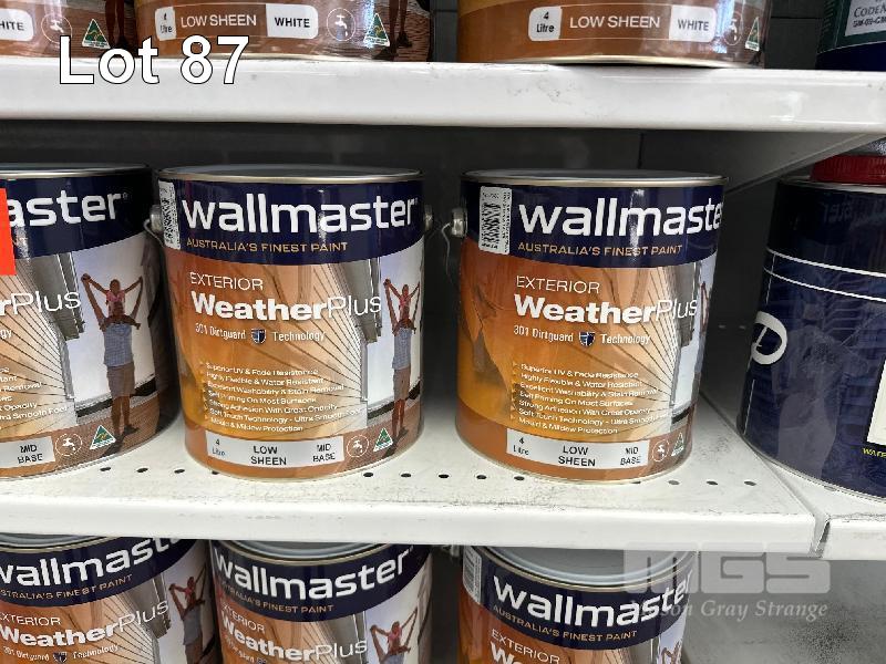 6 x TINS, WALLMASTER, 4 LITRE EXTERIOR LOW SHEEN MID BASE