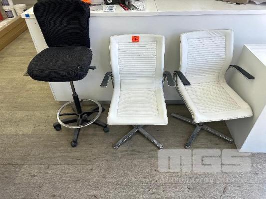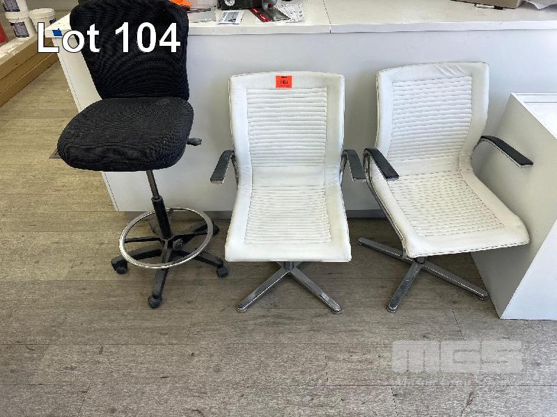 2 x VISITORS CHAIRS, SWIVEL BASE, GAS LIFT STOOL & DISPLAY STAND