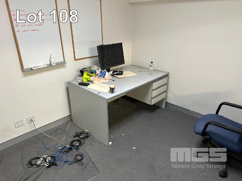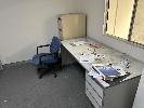 2 x DESKS, GREY LAMINATE & 1 x FILING CABINET, 4 DRAWER, FAWN STEEL &
