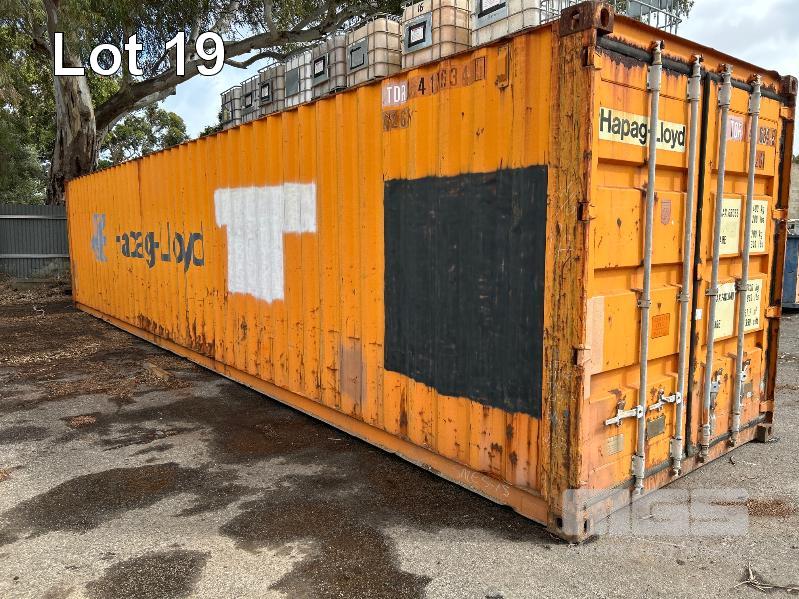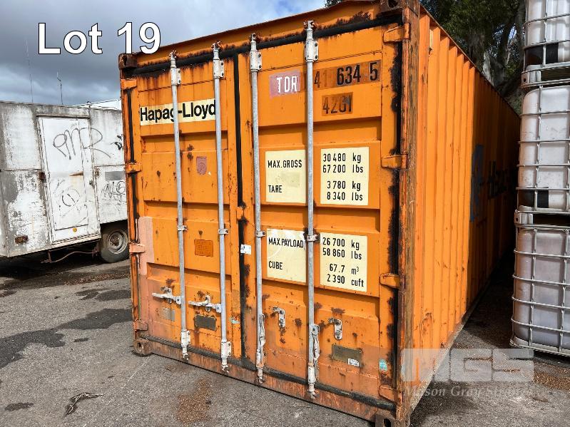 SHIPPING CONTAINER, 40' ORANGE, GOOD CONDITION MAX PAYLOAD: 26,700kg, 67.7m3 2 x SMALL HOLES IN ROOF