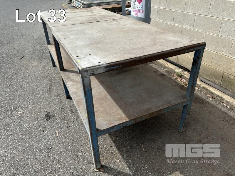 WORK BENCH, 9500 x 2300 x 900mm (H), HEAVY DUTY STEEL, PLATE TOP, 2 TIER
